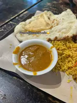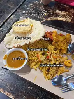 ๐ฝ๏ธ We chose the special Indian set mealโจ consisting of biryani rice, warm naan, Indian-style stir-fried vegetables, red chicken, and dal curry, topped with crispy papadums. ๐