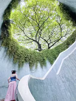 🌻 This park is home to the famous 'skylight' in Singapore. It features a spiral tunnel beneath a massive ancient tree, with light streaming through the leaves. Climbing the steps from below, it feels like ascending a 'stairway to heaven.'