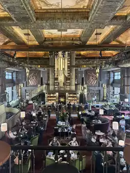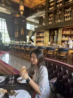 Stepping into the restaurant feels like traveling back to 20th-century Europe. The most eye-catching feature is the two-story giant wine rack 🍸. The high-end sofa seating and intricate decor details are impressive. Guests are encouraged to head upstairs to capture the entire restaurant in photos!