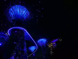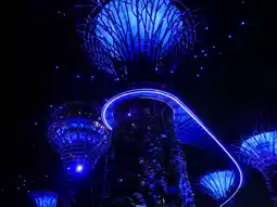 During my time in Singapore, I visited Supertree Grove at night. There was a night show from 7:45 PM for 15 minutes, where the trees were beautifully illuminated in sync with music. Another show is also held at 8:45 PM.