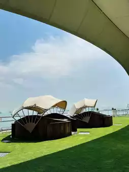 One of the standout features: the Lawn Club — yes, a real grass lawn on the top deck! Perfect for lounging, putting, bocce ball or picnic-style fun under the open sky.