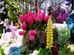 Yet, the wonders within extend far beyond. The space is adorned with soft pink-purple rhododendrons, bright pink hyacinths, golden yellow lupines, multicolored hydrangeas, and rare bluish-purple orchids. Together, these blossoms compete in beauty, weaving a lively and breathtaking spring panorama.