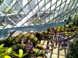 Wandering through the Cloud Forest cool conservatory at Singapore's Gardens by the Bay is like stepping into a tropical mountainscape. Beneath the vast glass dome, a lush "Cloud Mountain" rises dramatically from the ground. In the cool, misty air, exotic orchids, ferns, and bromeliads flourish at every turn. Looking up, visitors can trace the paths of winding aerial walkways and behold the awe-inspiring indoor waterfall, all combining to create an ethereal green paradise far removed from the world outside.