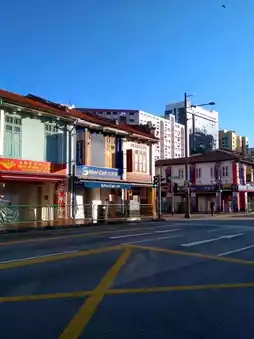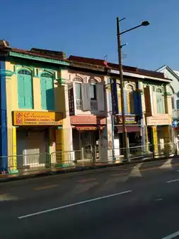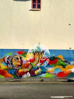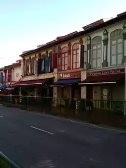 Singapore's Little India is a colorful and captivating district. Rows of pre-war shophouses retain the unique charm of the Nanyang style, painted in bright hues like blue, yellow, and red, with windows and shutters adorned in traditional geometric patterns. Modern structures such as the Indian Heritage Centre stand out with their diamond-shaped geometric facades and contemporary designs. Street murals, painted cow sculptures along the roads, and the bustling streets collectively showcase the area's vibrant fusion of culture and history.
