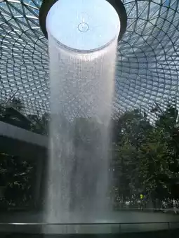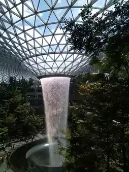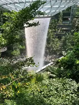 At the heart of Singapore's Jewel Changi Airport stands the breathtaking HSBC Rain Vortex. Soaring 40 meters through seven stories, this waterfall is the world's tallest indoor cascade, pouring down from the glass dome with majestic grandeur. Surrounded by the lush Shiseido Forest Valley, the Rain Vortex creates a captivating rainforest landscape. At night, the spectacle is further enhanced by a dazzling light and sound show, making it a must-visit landmark for travelers and visitors alike.
