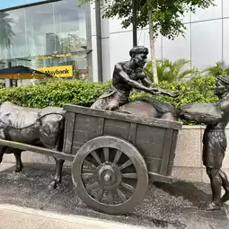 • Bronze Sculptures: Scattered along the river are lifelike bronze sculptures capturing moments of old Singapore — children diving into the river, coolies unloading cargo, traders at work. Each piece tells a story of the lives that built the city.