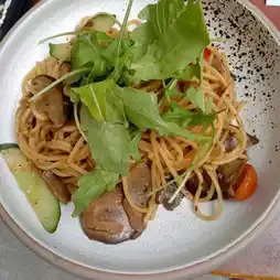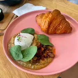 Great breakfast spot, also offer oat milk options. Amazing breakfast options, we tried several things and the taste was perfect. It’s a nice, air-conditioned space. There’s also a garden and a workspace in the back. The bakery products, coffee and desserts are really good.