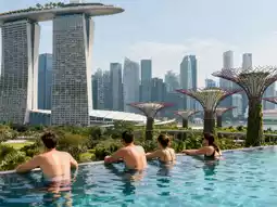 Spacious suites feature elegant decor, spa-like bathrooms, and sweeping Garden by the Bay views .
