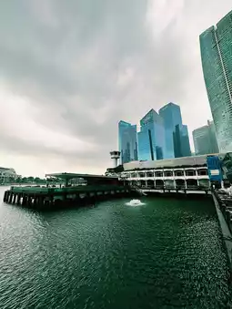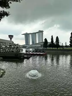 There’s a serene charm along the Singapore waterfront near The Fullerton Bay Hotel on an overcast afternoon. As grey clouds drift across the sky, the Marina Bay skyline glows softly in diffused light, with the Merlion, Clifford Pier, and Marina Bay Sands framing the scene. Locals and visitors pause to admire the gentle lapping of the water, snap moody photos, or enjoy an iced latte under the awnings—a perfect blend of calm, cityscape, and fleeting tropical ambiance.