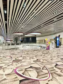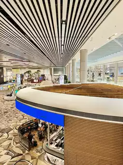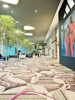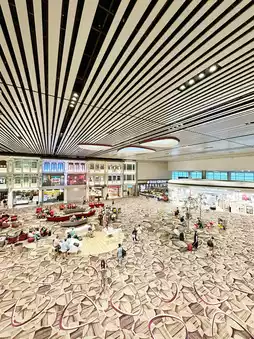 Step into Changi Airport Terminal 4, where architecture and innovation take flight. Designed with sleek curves, high ceilings, and vast open spaces, T4 captures the essence of effortless modern travel. Natural light floods through skylights, illuminating lush indoor greenery and artfully patterned walls inspired by traditional Asian motifs. Automated check-ins and cutting-edge technology blend seamlessly with calming aesthetics, creating a space that feels both futuristic and human. From its symmetrical design to the “Petalclouds” kinetic sculpture dancing above the central hall, every detail tells a story of motion, grace, and Singaporean ingenuity.