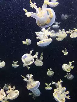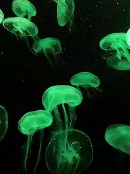 There are many kinds of jellyfish here. With the lighting💡, the jellyfish will present different colors, very special!