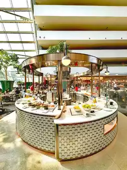 Rise restaurant which is located on the ground floor of Marina Bay Sands, since the beginning of June has operated the buffet breakfast in the real buffet style. No more is served by the crew members.