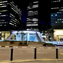 This is the fountain of wealth located in the center of the Suntec building. Suntec built around the fountain because it is believed that each building represents a finger that collects wealth.