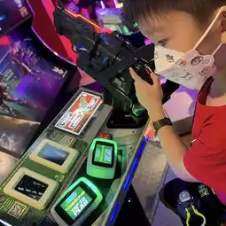 Our favourite is the Minecraft game where it allows up to four players to participate together, and you earn physical game cards which allows you to change character by scanning the card that drops out from the machine!