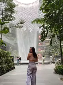 Jewel Changi is a shopping mall located in the airport. There are many shops, restaurants, and interesting things to buy. You don't have to go all the way to Orchard to shop. If you don't have enough time to travel, choose to shop here. It's very convenient.