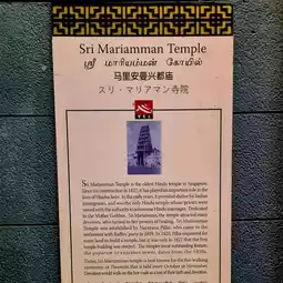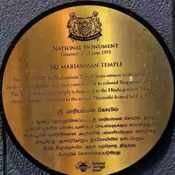 #SingaporeTravel. (Sri Mariamman Temple) Sri Mariamman Temple, located in Chinatown, dates back to 1827 and is the oldest Hindu temple in Singapore. Dating back to 1827, this Hindu temple was built by Indian immigrants from Nagapatnam and Cuddalore in southern India. It was also known at that time as the Mariamman Kovil Temple or the 'Kling' Street Temple.