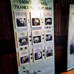 The Panda enclosure that contains kai kai and jia jia and also the cute fluffy red pandas. These 2 animals are endangered in the wild and have to be kept in their habitat at a temperature of 19 - 22 degree Celsius. You will be able to see the red panda at a close up where at times you will see it climbing above your head.