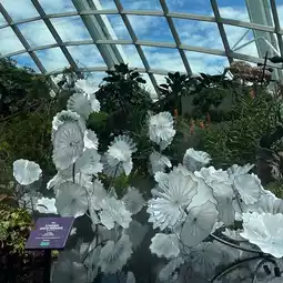 You can take the elevator to the top of this waterfall and take a skywalk among countless tropical plants.