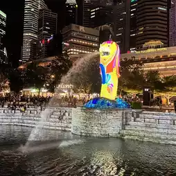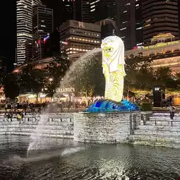 To commemorate the 50th anniversary of the installation of the Merlion at Singapore's Merlion Park, the Merlion will be lit up with projection mapping in a different color than its usual white from 6pm every day for one month from September 15, 2022 as part of the commemorative events.