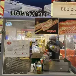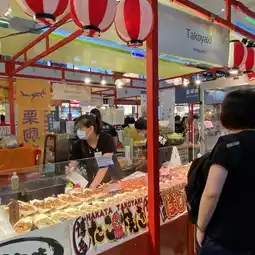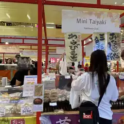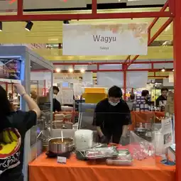 You can find a variety of popular Japanese street food such as Japanese fried cutlet, Wagyu beef cubes and steak, mini Taiyaki, dashi stock, fresh fruits imported from Japan, Takoyaki, beef bento, jumbo kani sticks, croquette, plum juice and many more. Most of the staff at the booth are Japanese.