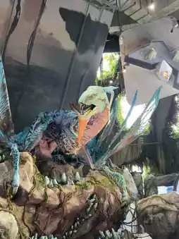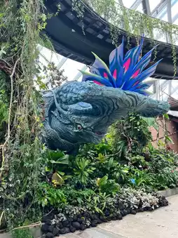 I stepped inside in awe, greeted by one banshee by the waterfall (oh and the cold breeze from a very strong AC). Then I saw several Na’vi family and other creatures tucked around nicely between the luscious display of greeneries. Head to the elevator to get to 7th floor, and walk along the platform admiring Singapore’s view from the glass roofs.