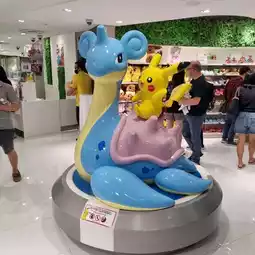 Pokémon center in Singapore sells all sorts of Pokémon plushies. The price may range from 19.90$ for a small Pokémon to 75$ for a big one. Limited edition ones may cost even more. There are a few photo spots that you may take pictures with the characters inside the shop and even an interactive wall for kids to play. Walk inside, and you can find people, young and old, battling and playing at those Pokémon machines. What a sight!