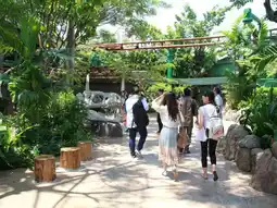 Jurassic Park in Jurassic World at Universal Studio Singapore is another highlight that is a zone that both children and adults can visit. There are many dinosaurs and there are also show activities that come out in rounds, lasting 20 minutes each. There are trainers who will teach and train the raptors to give commands one-on-one for tourists who come to watch. Or even a very large dinosaur skeleton is also available to see. It is a zone that you can stay and play for a long time. It is not boring at all.