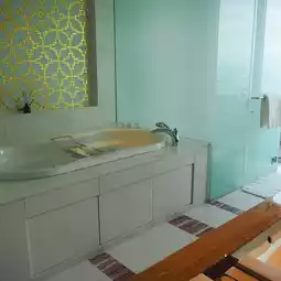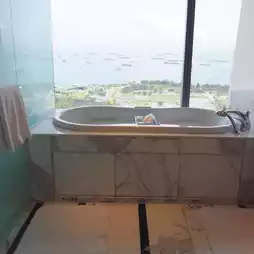 In the presidential suite, in addition to the grand piano in the lobby, there is also a karaoke room, massage room, hair salon room, Sauna room steam room...the facilities are very complete. Great view! From the hall you can overlook the city of Singapore, while on the other side you can enjoy the unbeatable sea view.