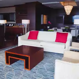 The Marina Bay Sands Hotel is a classic in Singapore. The presidential suite inside is luxuriously decorated and spacious. The suite has three rooms with bathrooms, King Size beds and cloakrooms.