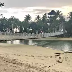 In Palawan Beach, Sentosa, there is a small suspension bridge on the beach. After crossing the bridge, you can reach a small island, which is located at the southernmost tip of Asia