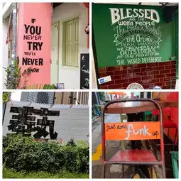 Clear ~ Clear ~ There are different small shops, bars, cafes, etc. In addition to colorful murals, there is also a D slogan or message on the wall, using text to clearly express ideals or positions.