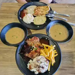 This western food stall is called Wild Olives and they serve hearty western food with huge portions at an affordable hawker price. For whatever mains you order, you get to choose any 2 sides. I ordered the grilled chicken chop with mushroom sauce, along with mushroom rice and fries and top up $1 for a bowl of soup. Altogether I paid $7.60 for this set meal with hearty portions to keep me full for the day. How reasonably priced and it was so yummy! My husband order Their grilled fish and it was equally good. Have no regrets here for food at Wild Olives.