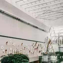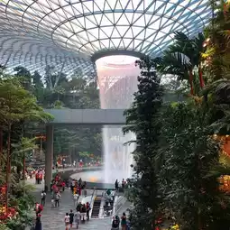 A massive airport. Amazing architecture. Smart high-tech , environmentally friendly building. Handles millions of passengers in the most efficient and smooth manner. Very efficient security, customs and immigration staff and facilities. The airport is spotless clean. Very well managed and maintained. Clear signs and information desks everywhere. Terminals are well connected with a tram system. Nearly all services and facilities are there, restaurants and Cafe's, lounges, children play areas, tropical gardens with waterfall, duty free ,ATM'S, luxury brands, clothing, travel accessories and much more. Comfortable seating in waiting areas. It is a destination by itself.