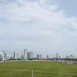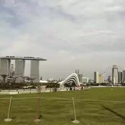 The lawn covers a large area and is surrounded by greenery. The view of the Marina Bay Sands Hotel is pleasant and you can breathe fresh air. It can be called an urban oasis.