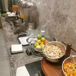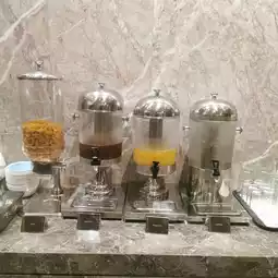 For drinks, there are fruit juices, coffee machine, soft drinks (in fridge, to be consumed in lounge only)