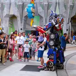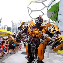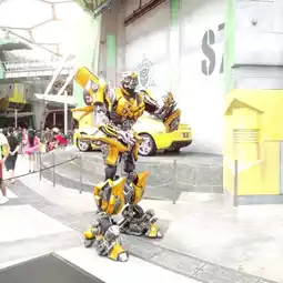 Transformers is a ride attraction located at Universal Studios Singapore, a theme park in Sentosa Island, Singapore. It is based on the popular Transformers franchise and features state-of-the-art special effects, 3D technology, and motion simulation. Visitors can experience a thrilling battle between the Autobots and Decepticons, and join the fight to save the world. We were so lucky to meet the popular characters, Optimus Prime - the leader of the Autobots and one of the most iconic Transformers, and Bumblebee - a friendly and loyal Autobot who transforms into a yellow Chevrolet Camaro.