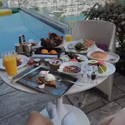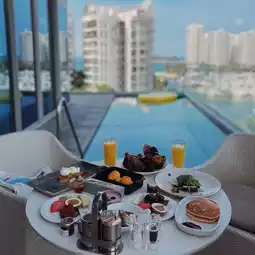The room is equipped with breakfast, but due to laziness, we called room service for breakfast the next day, and it was so comfortable to enjoy breakfast by the pool.