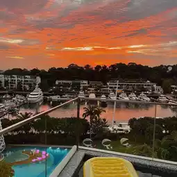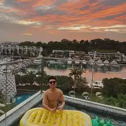 Our room type is [WOW Suite], one of only 2 suite in the hotel. As soon as you enter the door, you will be shocked by the huge living room. The living room is connected with a bar and dining room. The open space is very suitable for parties. Outside the living room is a L shape balcony and swimming pool, from which you can see the yachts club in Sentosa cove. Fortunately, the sunset was super beautiful on the night.