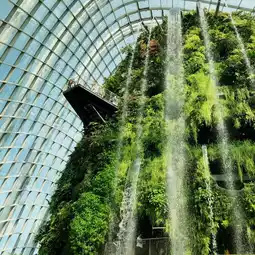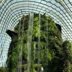 [Gardens by the Bay, Singapore: Cloud Forest, a giant artificial waterfall]