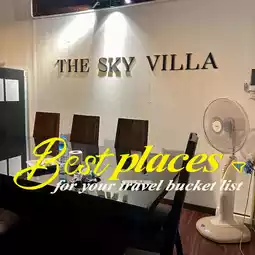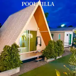The sky villa, Singhanakhon, Songkhla Province is a fairly large pool villa. There are 4 houses for 2 people with private bathrooms, 2 more large domes, and a living room area where you can sing karaoke. The rooms are quite large and spacious. The kitchen equipment is complete. The disadvantage is that there are too many flies and it is not on the beach. The alley to get in is quite narrow. You may drive a little further. But if you get in, it is considered a private area because the area is all ours. It can accommodate about 20 people and can hold a party.