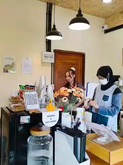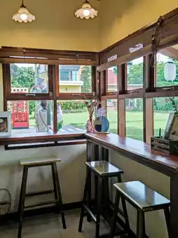 Atmosphere: The cafe is decorated in Japanese style. The shop is very cute. It is beautiful. There are many photo spots. The food is very delicious. There are many drinks. The taste is delicious. There are seats both inside the shop, cool and outside. The atmosphere is good but a little hot. There is a lot of parking behind the shop. But you need a private car to travel.