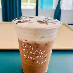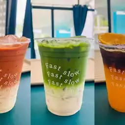 Cafe lovers, don't miss FastSlow Cafe, a newly opened cafe in a minimalist style. There are bakery items, croissants, and Korean egg sandwiches, as well as a variety of beverages, teas, and coffees. The menu is 100% halal. There is a beautiful photo corner for checking in. 📷
