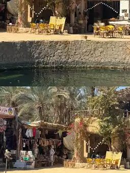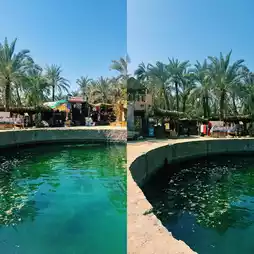 The surroundings featured a picturesque blend of palm trees and sand dunes, creating an exotic landscape. Next to the spring, there were small cafes and souvenir shops, making it the perfect spot to sip on mango juice and unwind. The peaceful and laid-back atmosphere unique to Siwa made the experience truly special. It felt like stepping back in time for a brief moment, creating a cherished memory.