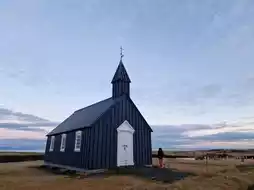 Head west ~30min (20km) on Road 54 to Búðakirkja (Black Church) in remote Búðir—its pitch-black wood contrasts epic lava fields & Snæfellsjökull glacier 🏔️.