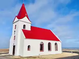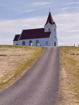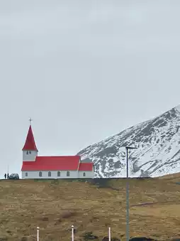 Located at the northwestern tip of the Snæfellsnes Peninsula, Ingjældshóll Church is one of Iceland's most unique cultural landmarks. Built in 1903, this red-roofed, white-walled church is not only one of the oldest surviving concrete structures in the world, but is also renowned for its legendary status as the "Red House for Eye Tests"—the very icon that inspired it, used to stabilize the eye during eye exams.