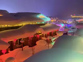 Snow Town is a small village that is open only a few months each year. It takes about 5-6 hours to travel there from Harbin city. It's incredibly beautiful and definitely worth visiting at least once. Staying for two nights is ideal, as one night might feel too short. At night, the entire village is lit up, creating a stunning view. There are also plenty of activities to enjoy. Photographers are available, and you can negotiate the price with them directly.