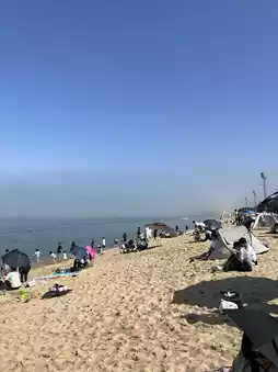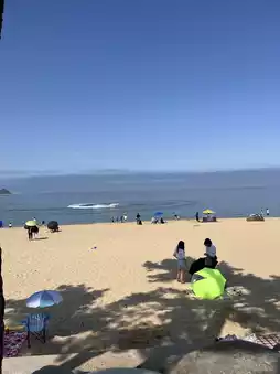 There is a plaza in the center of the beach entrance, so there are busking, caricatures, and everything from things to see and eat