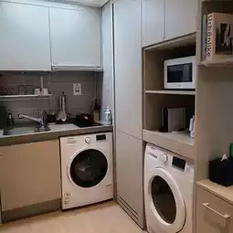 Superior Double is the largest room in Urban Stay, and the bedroom and living room are separated, so the balcony is long, and it is equipped with a dressing room, cooking utensils, a washing machine, and a dryer, so it seems like a good place to stay for a month.
