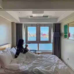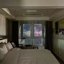 This is a high cost-performance hotel with a wonderful view of Cheongcho Lake! 💗🌠 It is located in Marinabay Sokcho, where you can enjoy the peaceful daytime and splendid night view. The room is very clean and even has a half-body bathtub, which is a pleasant surprise! 😳♥️