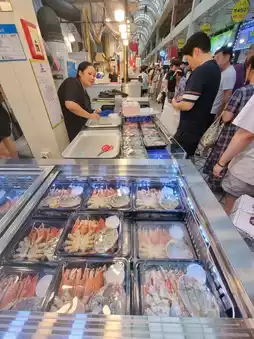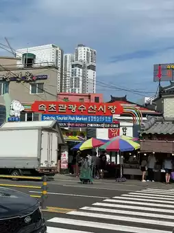 Sokcho Tourist Fish Market, commonly called Jungang Market. It is a must-visit tourist destination in Sokcho, selling Manseok Dakgangjeong and delicious crabs. Sokcho Beach and Sokcho Iway Street are within 10 minutes by car, so I recommend visiting them together^^